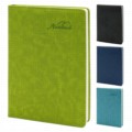 Микс цветове: Син; Черен; Тюркоаз, Зелен Междуредово разстояние 9 мм Горният блок съдържа икони за времето / дни от седмицата на английски / номер на бележка / дата Заоблени ъгли,Лентовка/отметка. Корицата е изработена от твърд картон, покрит с мека PU |