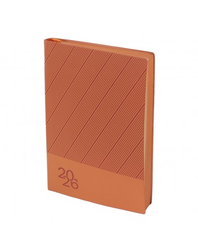 Бележник с дати 14.5 см х 21 см термо кант Flexy с оранжева порезка, 168 листа, 80 г/м2, Оранжев, листа в цвят слонова кост