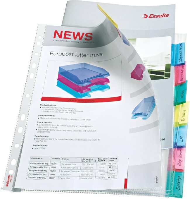 Джоб с перфорация Esselte А4 130 мик 8 бр. с цветни индекси