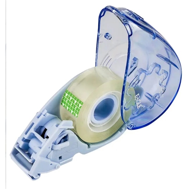 – автоматично рязане, работа с една ръка – преносим и удобен, лек и издръжлив, лесен за употреба в трудна среда – много здрав и безопасен за употреба режещ нож, прибран в корпус – за две стандартни ширини на лентата: 12 мм и 19 мм – включена ролка с лента (19 мм x 33 м) – размер: 11 см x 6,5 см |