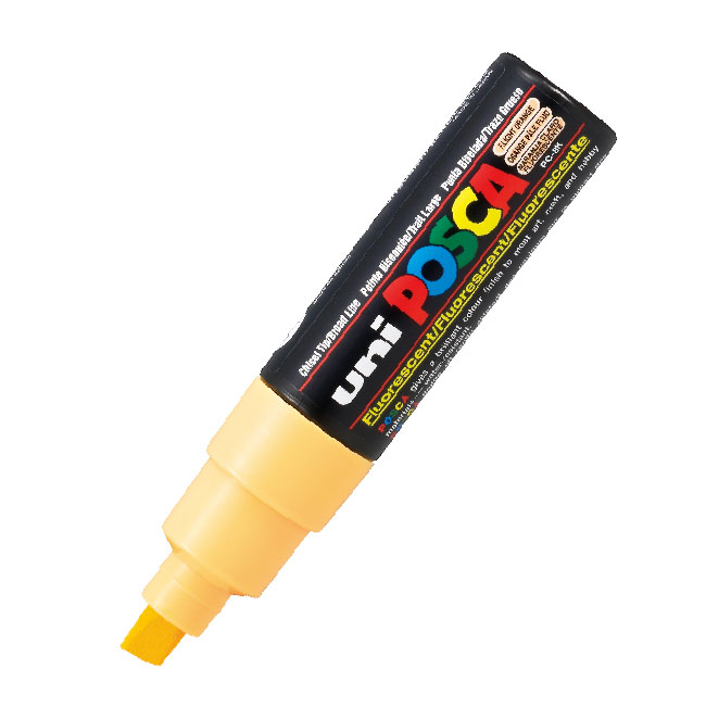 Маркерите POSCA ползват напълно безвредно мастило, без мирис, на водна основа, което е изключително устойчиво на всякакви атмосферни условия. Те са подходящи за рисуване върху всякакви материали и повърхности - картон, глина, дърво, метал, текстил, порцелан, керамика, стъкло. Химическата формула на мастилото позволява да постигнете един и същ цвят без значение дали рисувате върху тъмен или светъл фон. Голямото разнообразие на цветовата гама, изключителната плътност на нанесения цвят и разнообразието от дебелини и форма на писците прави POSCA любим маркер както на професионалисти, така и на любители. Ярки цветове дори и върху тъмен фон. Дебелина на линията: 8 mm 6 бр. = 1 кутия |