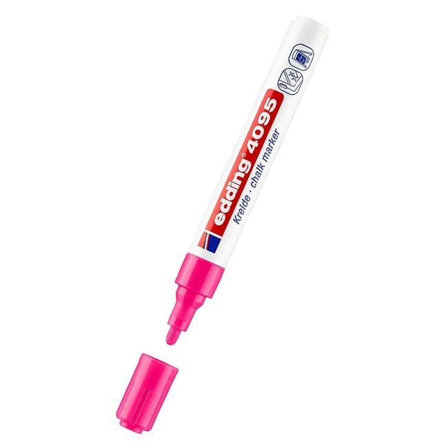 Маркер за стъкло Edding 4095 течен тебешир Розов Марка:Edding Цена без ДДС: 3.17 € / 6.20 лв. Изберете цвят: