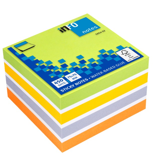 Самоз лист Info Notes Микс Brilliant 52 75х75mm 450 л. Марка:Info Notes Цена без ДДС: 5.40 € / 10.56 лв. |